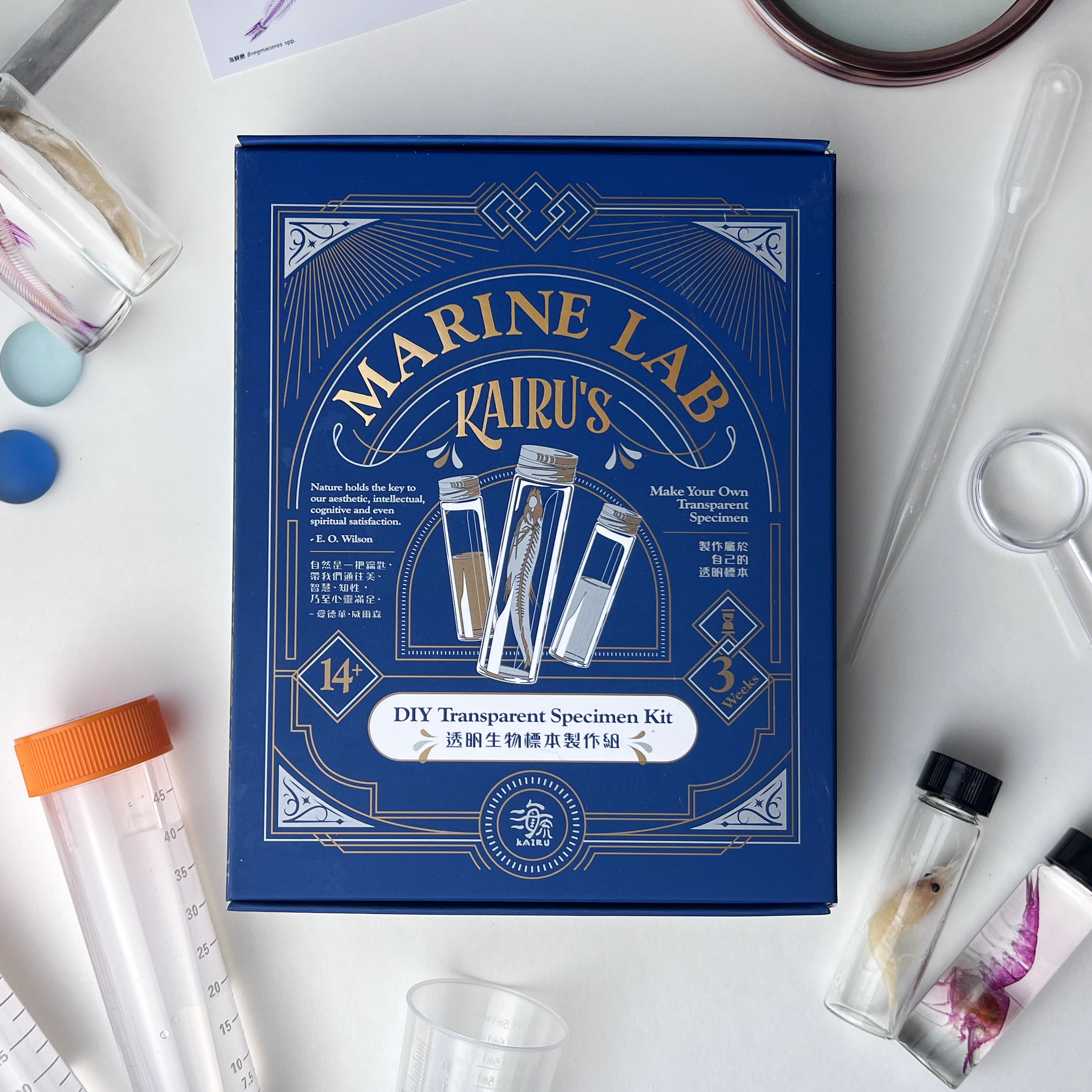 海琉工作室專利研發手作DIY,Kairu’s Marine Lab系列透明標本製作組,不需自備任何工具,製作步驟簡單,讓你零經驗、免基礎地完整實際操作透明標本的實驗課程,也是個少見有趣又極具生物教學意義的實驗玩具,親手製作一隻獨一無二的標本,更適合大朋友帶小朋友一起動手操作,保存液安全無毒且標本可永久保存,售後還有專人可以線上諮詢喔!